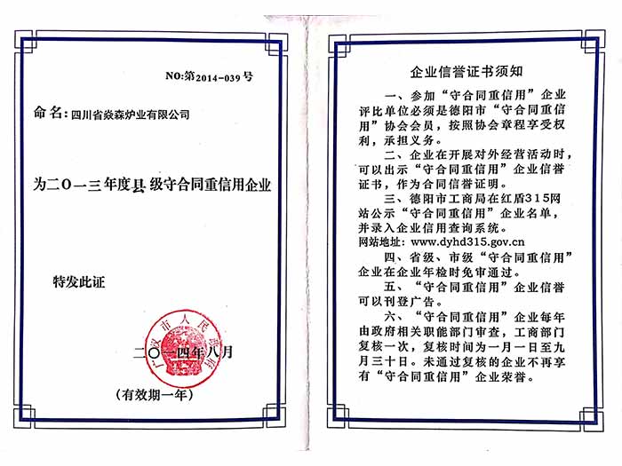 2、廣漢市守合同重信用企業(yè)、企業(yè)信用等級3A單位等榮譽(yù)資質(zhì)